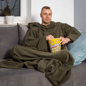 Kocyko - Szlafrok Oliwkowy ciepły koc z rękawami